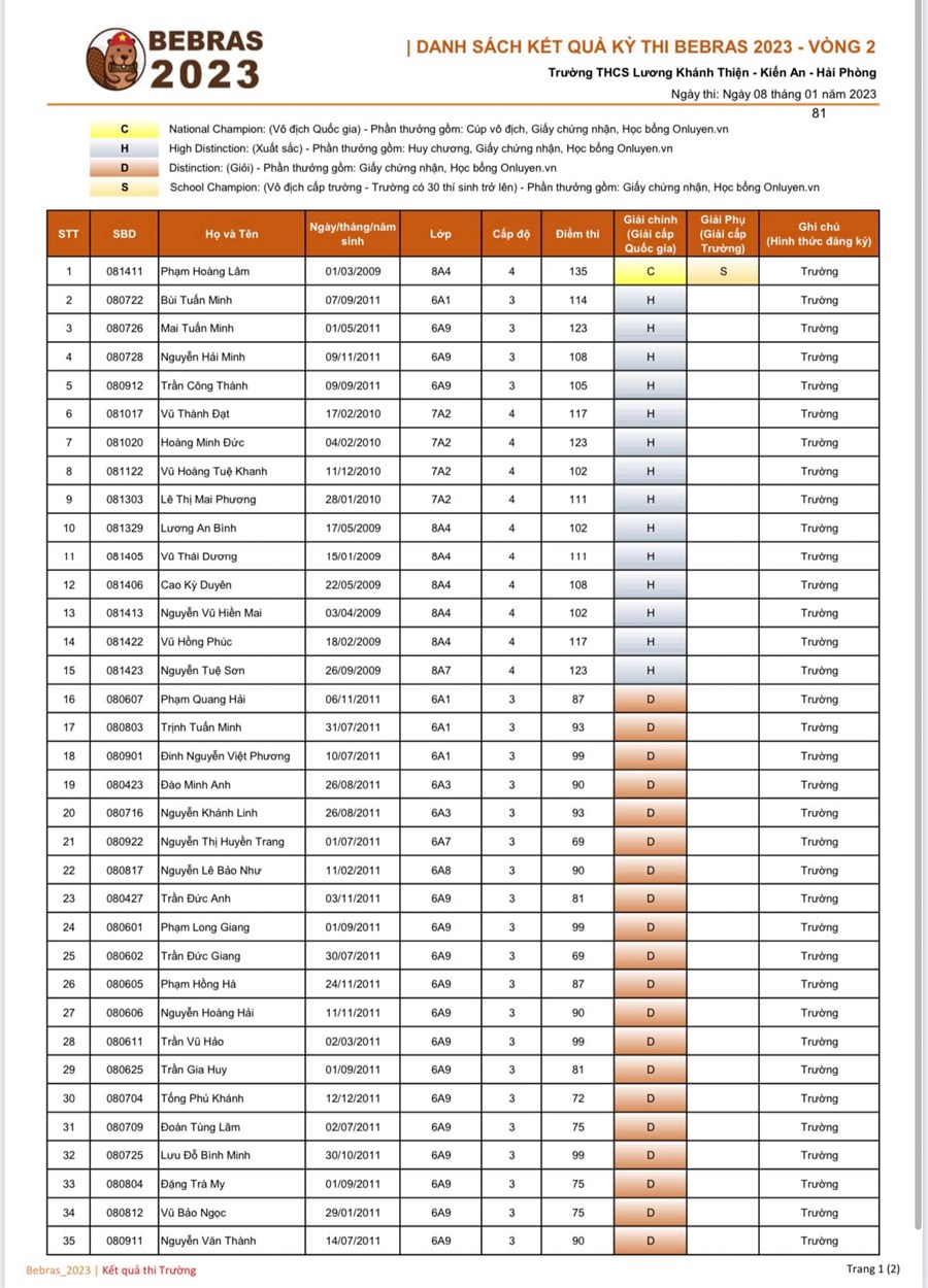 - Cuộc thi Toán AMC10: 2 HS thi vượt cấp cùng HS khối 9. Kết quả: HS Phạm Hoàng Lâm lớp 8A4 nằm trong top 5% trên tổng số 11.000 thí sinh có điểm cao nhất Toàn quốc tham dự lễ Vinh danh tại Hà Nội sáng ngày 23/4/2023.
