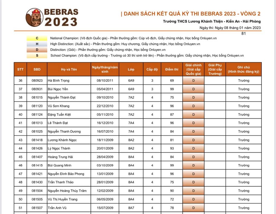 - Cuộc thi thuật toán Bebras: 51 HS đạt giải cấp Quốc gia