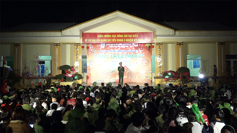 Sau một buổi chiều rèn luyện đầy thử thách, vào buổi tối, sân khấu ngoài trời tại Lữ đoàn 603 rực sáng với chương trình Gala “Vui Xuân cùng chiến sĩ” chủ đề “Tết Việt”. Gala là dịp để các lớp khối 8 của trường thể hiện tài năng, sự sáng tạo thông qua những tiết mục văn nghệ được chuẩn bị công phu, kết hợp nhuần nhuyễn giữa âm nhạc, vũ đạo và ánh sáng, tạo nên một không gian nghệ thuật đầy cảm xúc. Điểm nổi bật của chương trình chính là cách mà các lớp khéo léo kết hợp những giá trị truyền thống của dân tộc, những thông điệp ý nghĩa. Các em học sinh trường THCS Lương Khánh Thiện không chỉ trình diễn những tiết mục hiện đại, sôi động, phù hợp với lứa tuổi, mà còn gửi gắm những câu chuyện về lịch sử, văn hóa, lòng tự hào dân tộc, tình yêu quê hương đất nước và khát vọng xây dựng Tổ quốc.