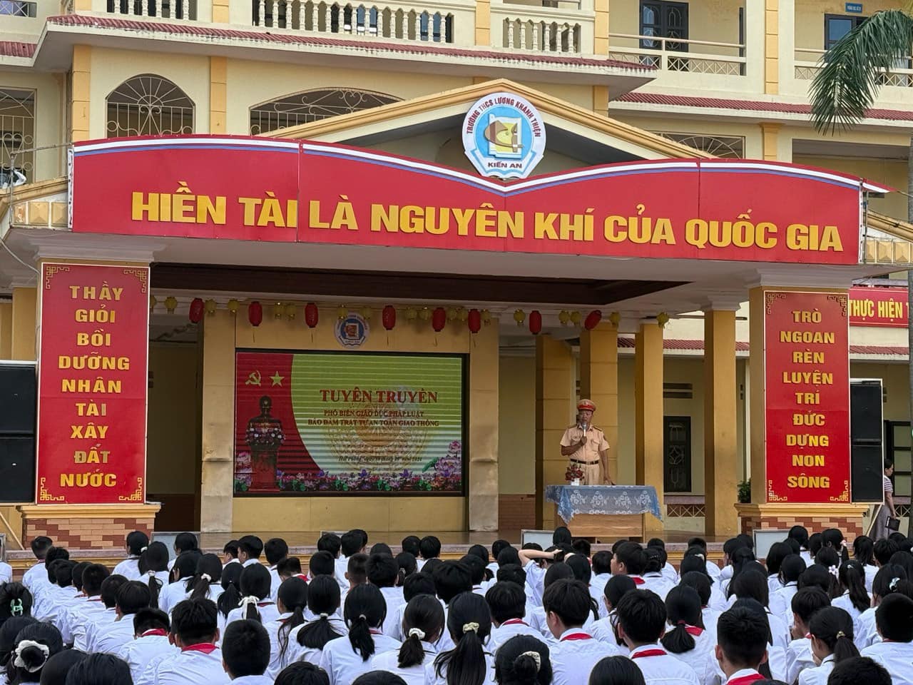Nằm trong kế hoạch tuyên truyền pháp luật an toàn giao thông cho học sinh các cấp dịp đầu năm học mới, chiều 30/9/2024, Đội CSGT – CA quận Kiến An đã phối hợp với trường THCS Lương Khánh Thiện tổ chức tuyên truyền cho các em học sinh về trật tự an toàn giao thông trong nhà trường.